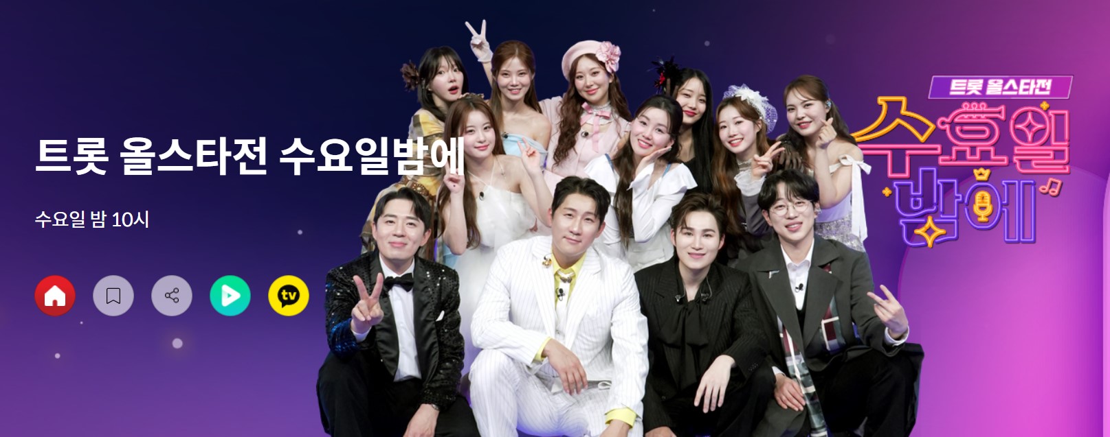 〈트롯 올스타전 수요일밤에〉는 단순 하이라이트 방송이 아닙니다. 팬심, 감동, 역사를 담은 몰입형 레전드 무대 콘텐츠로서, 매주 수요일 밤 10시 TV조선에서 본방을 시청하거나 OTT 플랫폼으로 다시보기 할 수 있습니다.